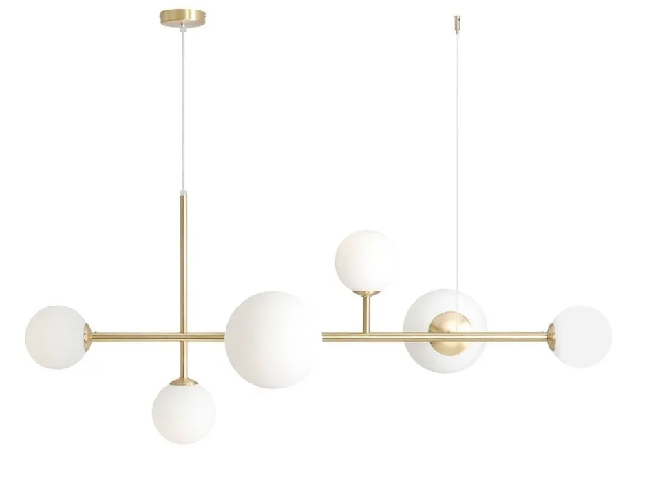 Die satinierten Glasschirme der Pendelleuchte im Kugel Design streuen das Licht blendarm für eine wohnliche Atmosphäre über Deinem Esstisch in Wohnzimmer und Esszimmer