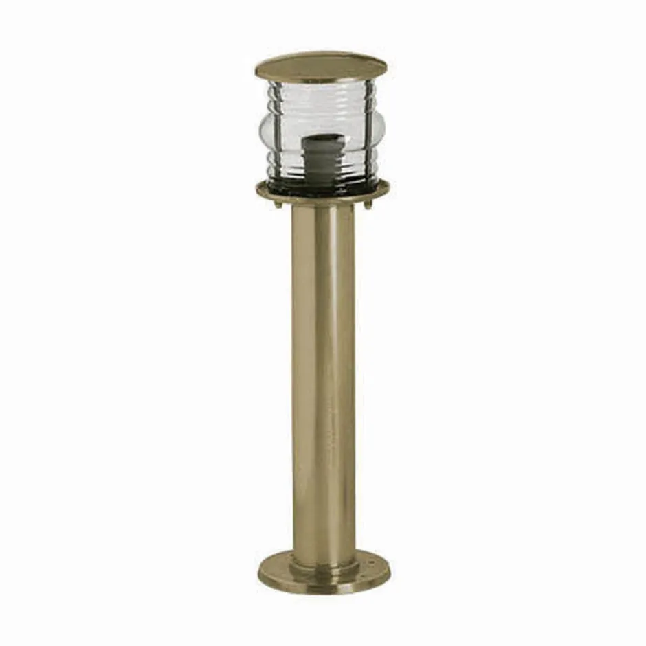 Die elegante Außenstehleuchte aus massivem Messing und Glas sorgt für eine großzügige Beleuchtung nach allen Seiten und erhellt Wege, Terrasse und Garten: für mehr Sicherheit auf dem Grundstück
