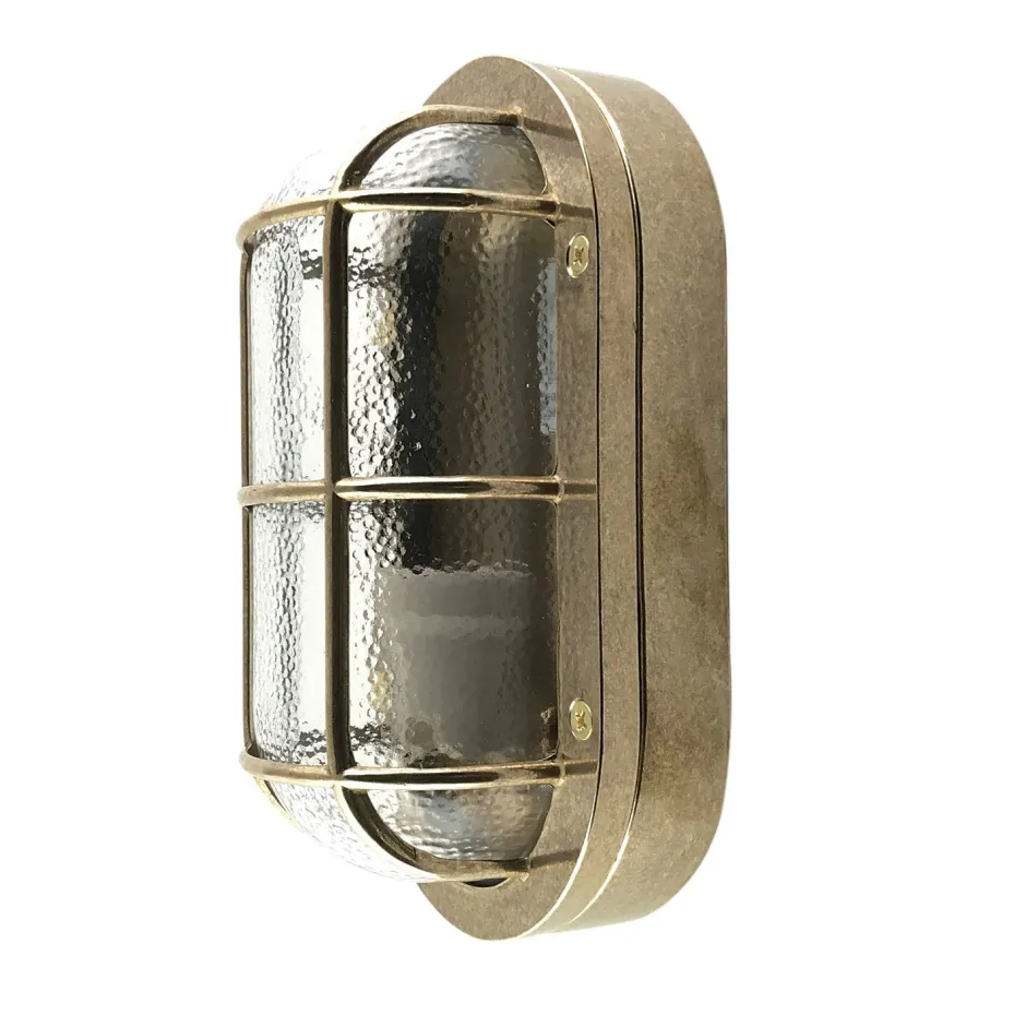 Maritime Außenwandleuchte aus massivem Messing und kunstvollem Glas in Messing: ideal als Haustür Lampe, Terrassenbeleuchtung, Balkon Lampe, Carport Beleuchtung und Garagenlampe