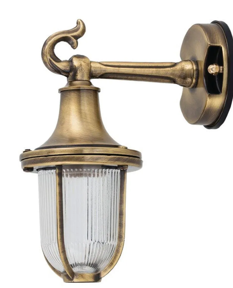 Rustikale Außenwandleuchte aus massivem Messing und Glas