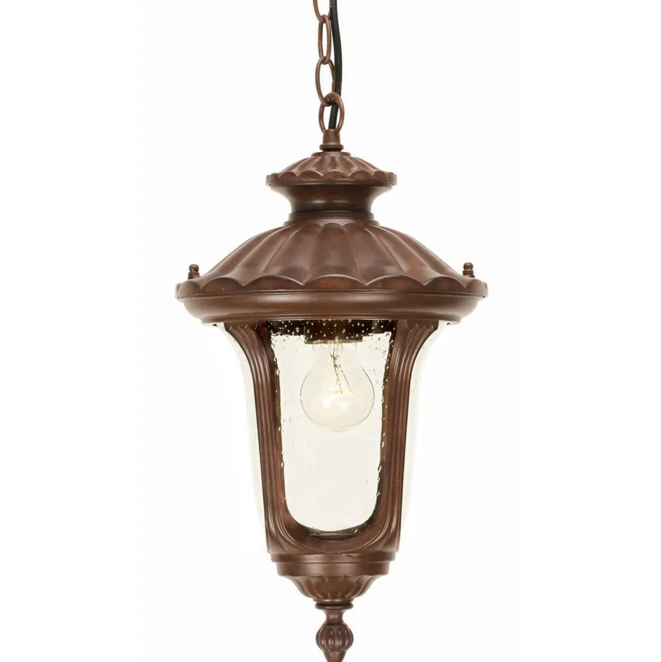 Reich verzierte Pendelleuchte für Außen in edlem Bronze
