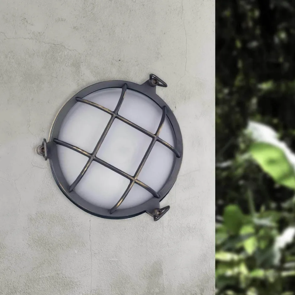 Maritime Außenwandlampe aus massivem Messing im Stil eines antiken Bullauges