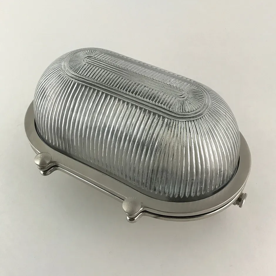 Maritime Außenwandleuchte aus massivem Messing und kunstvollem Riffelglas in Nickel matt: ideal als Haustür Lampe, Carport Beleuchtung und Garagenlampe