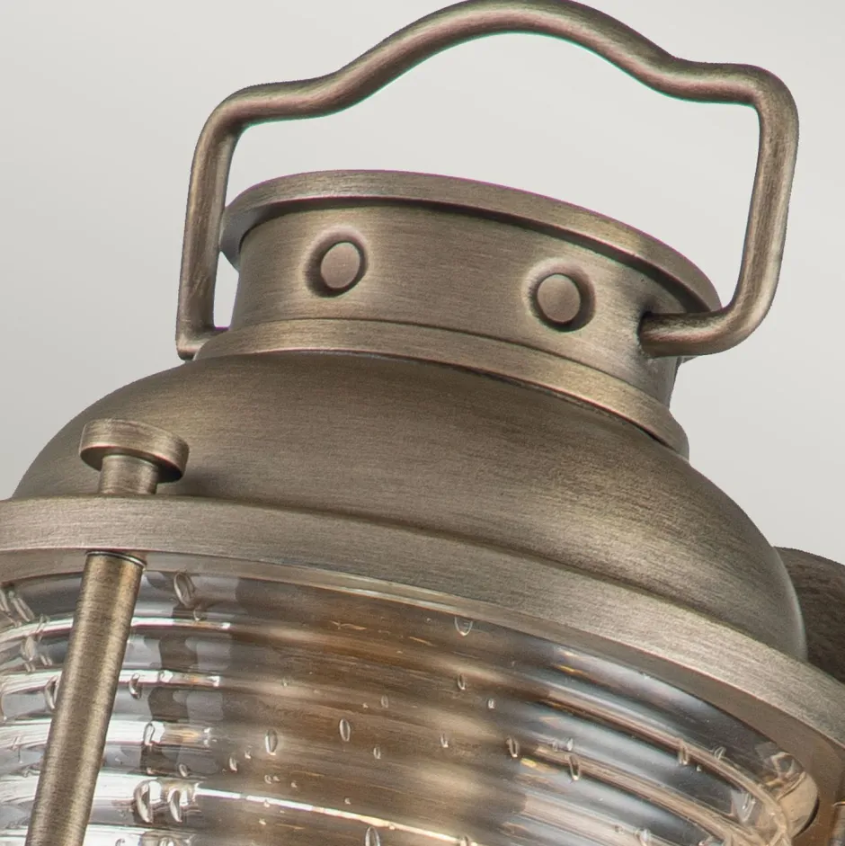Kleine Vintage Außenleuchte für die Wand aus robustem Aluminium und kunstvollem Glas