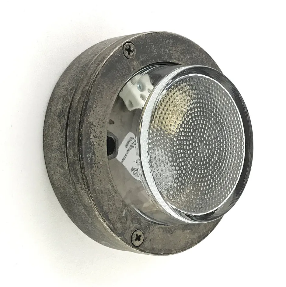 Runde Außenwandleuchte aus massivem Messing und kunstvollem Glas in Zinn: ideal als Haustür Lampe, Terrassenlampe, Balkon Lampe, Carport Beleuchtung und Garagenlampe
