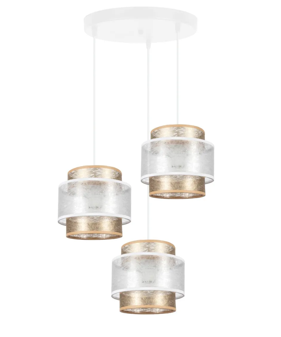 Moderne Hängelampe aus Metall und Stoff in Weiß und Gold