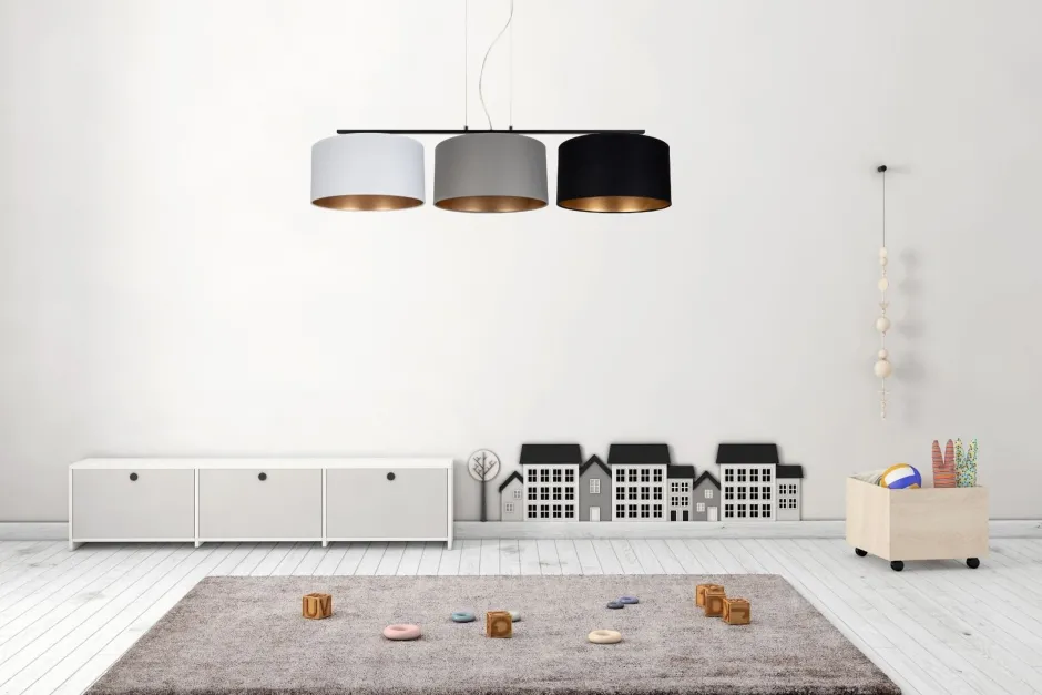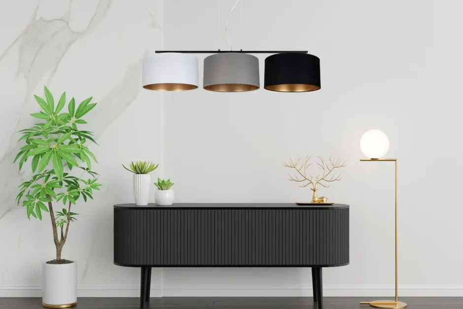 Qualität Made in EU Entdecke die perfekte Kombination aus modernem Design und funktionaler Eleganz mit unserer Pendelleuchte aus Metall und Stoff. Diese außergewöhnliche Esstischlampe ist nicht nur ein Blickfang, sondern auch eine praktische Lösung für hohe Decken. Mit ihrer großen Hängetiefe sorgt sie für eine optimale Ausleuchtung, egal ob im Wohnzimmer oder im Esszimmer. Die verschiedenen Stoffschirme in harmonischen Farben streuen das Licht diffus und blendarm, sodass eine angenehme Lichtstimmung entsteht. Die goldenen Schirminnenseiten verleihen der Leuchte einen Hauch von Luxus und Eleganz, der jeden Raum aufwertet. Du hast die Freiheit, die Helligkeit und Lichtfarbe selbst zu bestimmen, indem du die passenden Leuchtmittel wählst. So kannst du die Atmosphäre ganz nach deinem Geschmack gestalten – ob warm und einladend oder hell und funktional. Diese moderne Leuchte ist nicht nur ein stilvolles Accessoire, sondern auch ein Qualitätsprodukt, das in der EU gefertigt wird. Sie passt perfekt über den Esstisch und schafft eine einladende Umgebung für gesellige Abende mit Freunden und Familie. Wenn du auf der Suche nach einer Esstischleuchte bist, die sowohl funktional als auch ästhetisch ansprechend ist, dann ist diese Pendelleuchte genau das Richtige für dich. Sie vereint modernes Design mit praktischen Vorteilen und wird schnell zum Herzstück deines Wohnraums.