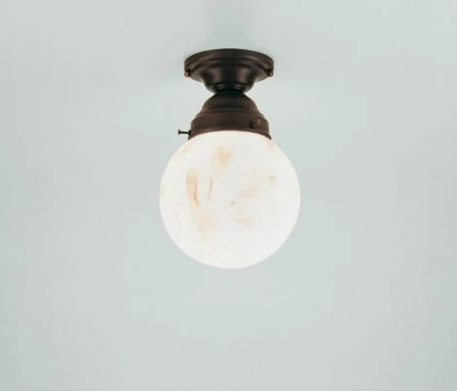 Der Schirm in Marmor Optik sorgt für ein blendarmes Lichterlebnis