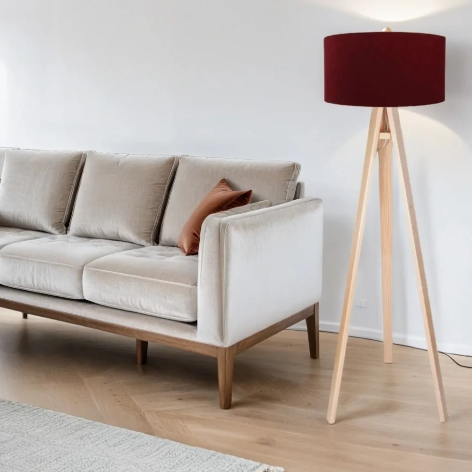 Handarbeit: Made in EU Entdecke die AIMEE Stehlampe – ein stilvolles Highlight für dein Wohnzimmer, das sowohl Funktionalität als auch Design vereint. Mit ihrem eleganten Schirm in Bordeaux und der edlen Silber-Optik zieht diese kleine Stehlampe alle Blicke auf sich. Das Dreibein-Gestell aus hochwertigem Holz sorgt nicht nur für Stabilität, sondern verleiht der Lampe auch einen charmanten Retro-Look, der perfekt in moderne und klassische Wohnkonzepte integriert werden kann. Die AIMEE Stehlampe ist mit einem E27–Fassung ausgestattet und unterstützt Leuchtmittel bis zu 60W, sodass du die Lichtstimmung ganz nach deinen Wünschen gestalten kannst. Ob warmes, einladendes Licht für gemütliche Abende oder helles Licht für konzentriertes Arbeiten – die Wahl liegt bei dir. Mit einer Höhe von 140 cm und einem Durchmesser von 40 cm passt sie ideal in jede Ecke deines Wohnzimmers, ohne dabei zu viel Platz einzunehmen. Dank der IP20–Schutzklasse ist die AIMEE Stehlampe perfekt für den Innenbereich geeignet. Der praktische Fußschalter ermöglicht eine einfache Bedienung, während die UV-Beschichtung des Schirms dafür sorgt, dass die Farben auch bei direkter Sonneneinstrahlung strahlend bleiben. Egal, ob du auf der Suche nach einer kleinen Stehlampe für dein Wohnzimmer bist oder eine stilvolle Beleuchtung für dein Zuhause wünschst – die AIMEE Stehlampe ist die perfekte Wahl. Lass dich von ihrem skandinavischen Design inspirieren und genieße die harmonische Atmosphäre, die sie in jeden Raum bringt. Fazit: Die AIMEE Stehlampe vereint Qualität, Funktionalität und ein ansprechendes Design. Sie ist die ideale Ergänzung für dein Wohnzimmer und sorgt für ein gemütliches Ambiente. Hol dir jetzt diese stilvolle Holzlampe und erlebe, wie sie dein Zuhause verwandelt!