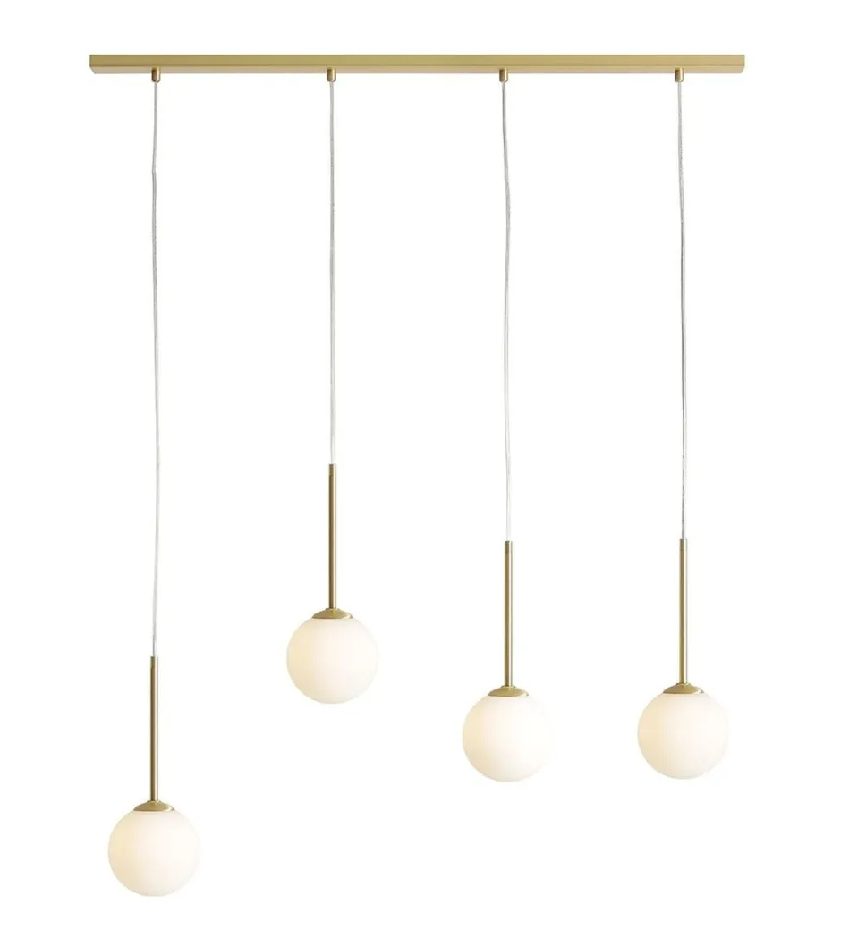 Die satinierten Kugelschirme aus Glas streuen das Licht warm und weich – ideal für ein gemütliches Ambiente über dem Esstisch in Wohnzimmer und Esszimmer