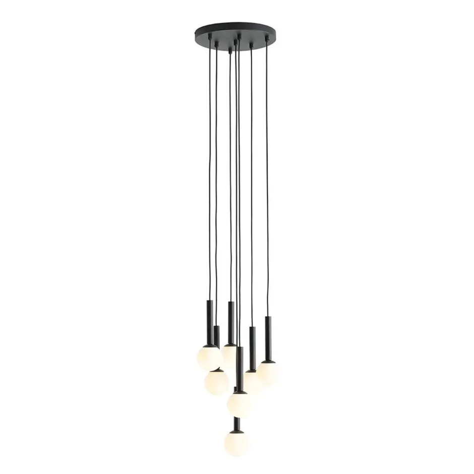 Moderne Pendelleuchte aus Metall und Glas in Schwarz und Weiß