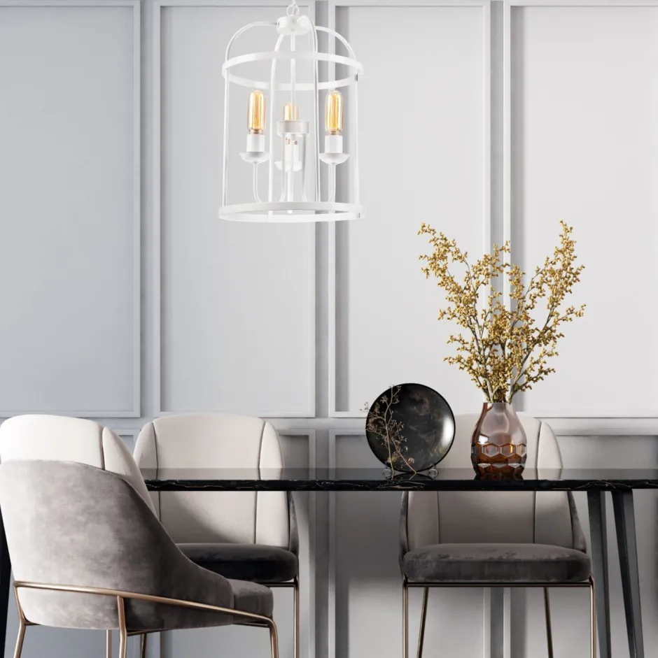 Das Design erinnert an eine antike Voliere (Vogelkäfig) und macht aus der Hängelampe einen dekorativen Blickfang in jedem Raum