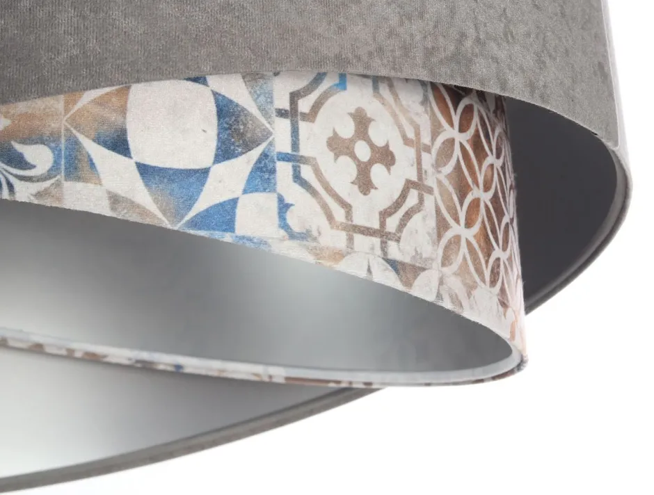 Elegante Pendelleuchte in Grau, Beige, Silber mit stilvollen Vintage Print für Wohnzimmer, Schlafzimmer und Esszimmer
