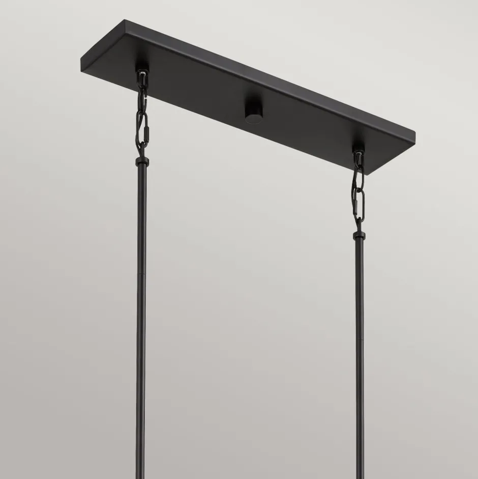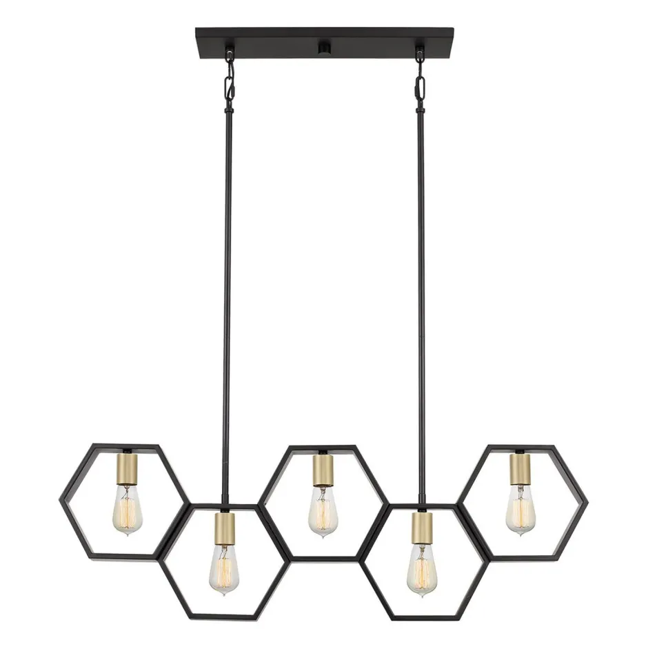 Die hexagonalen Schirme setzten einen außergewöhnlichen Akzent, der aus der langen Hängelampe einen besonderen Blickfang macht