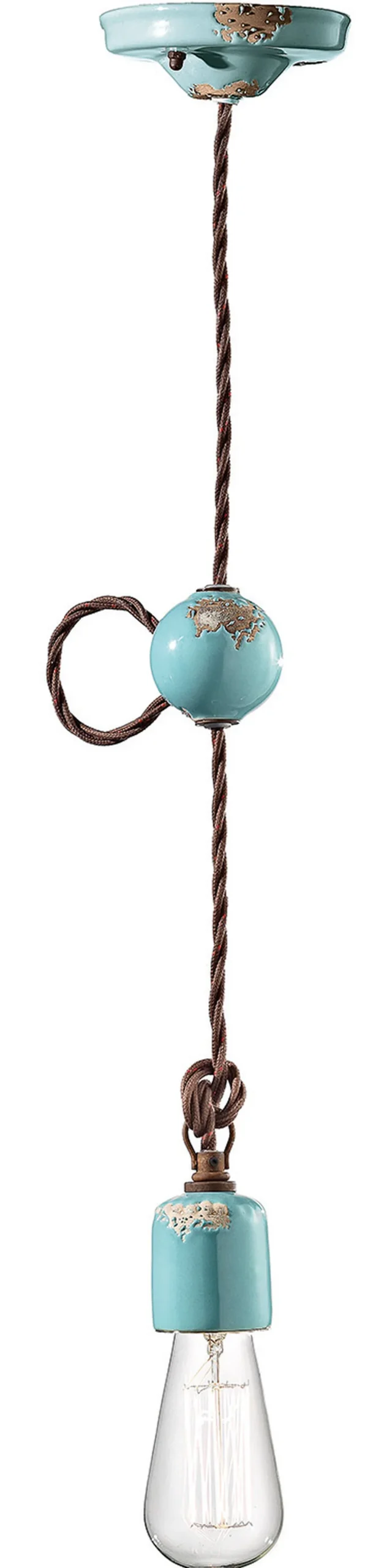 Verstellbare Pendelleuchte aus Keramik und Metall in hellem Blau