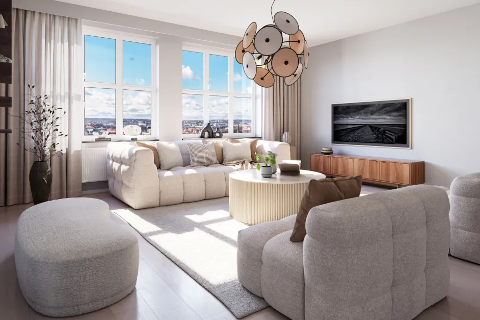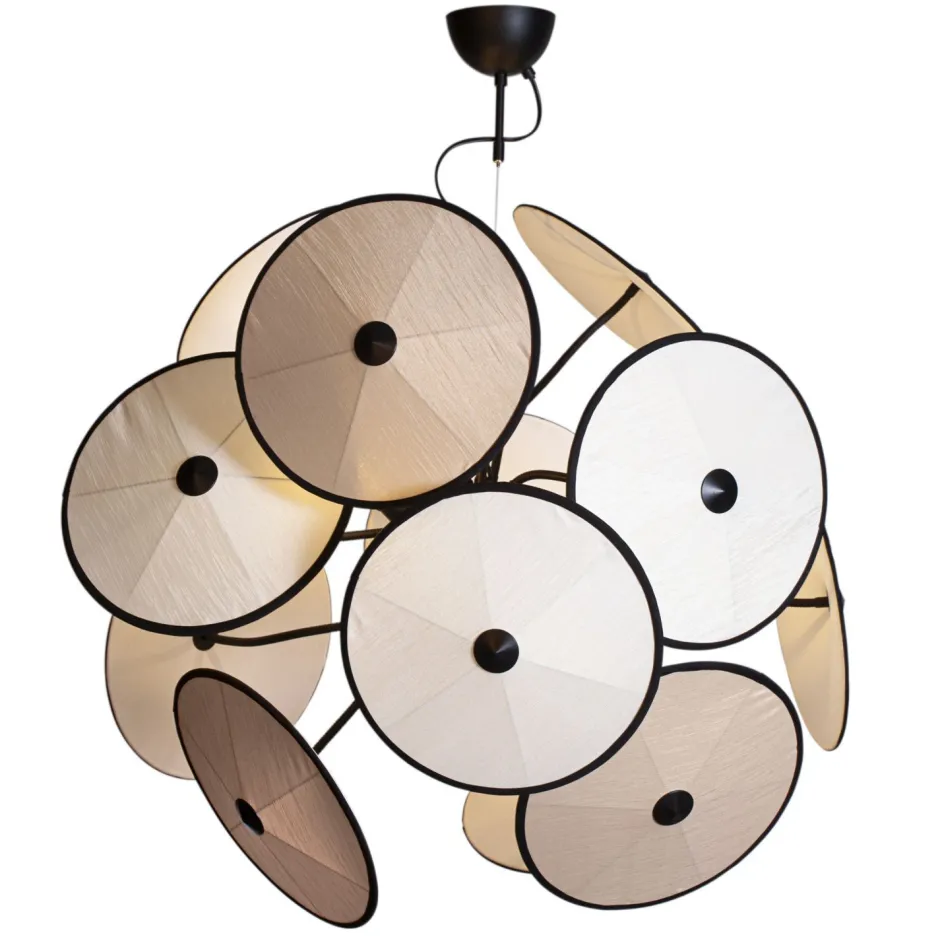 Die Kreise aus Seide in verschiedenen Beige-Tönen sorgen für einen einzigartigen Look, der dekorativ und dennoch wohnlich ist – ein absolutes Highlight in jedem Raum