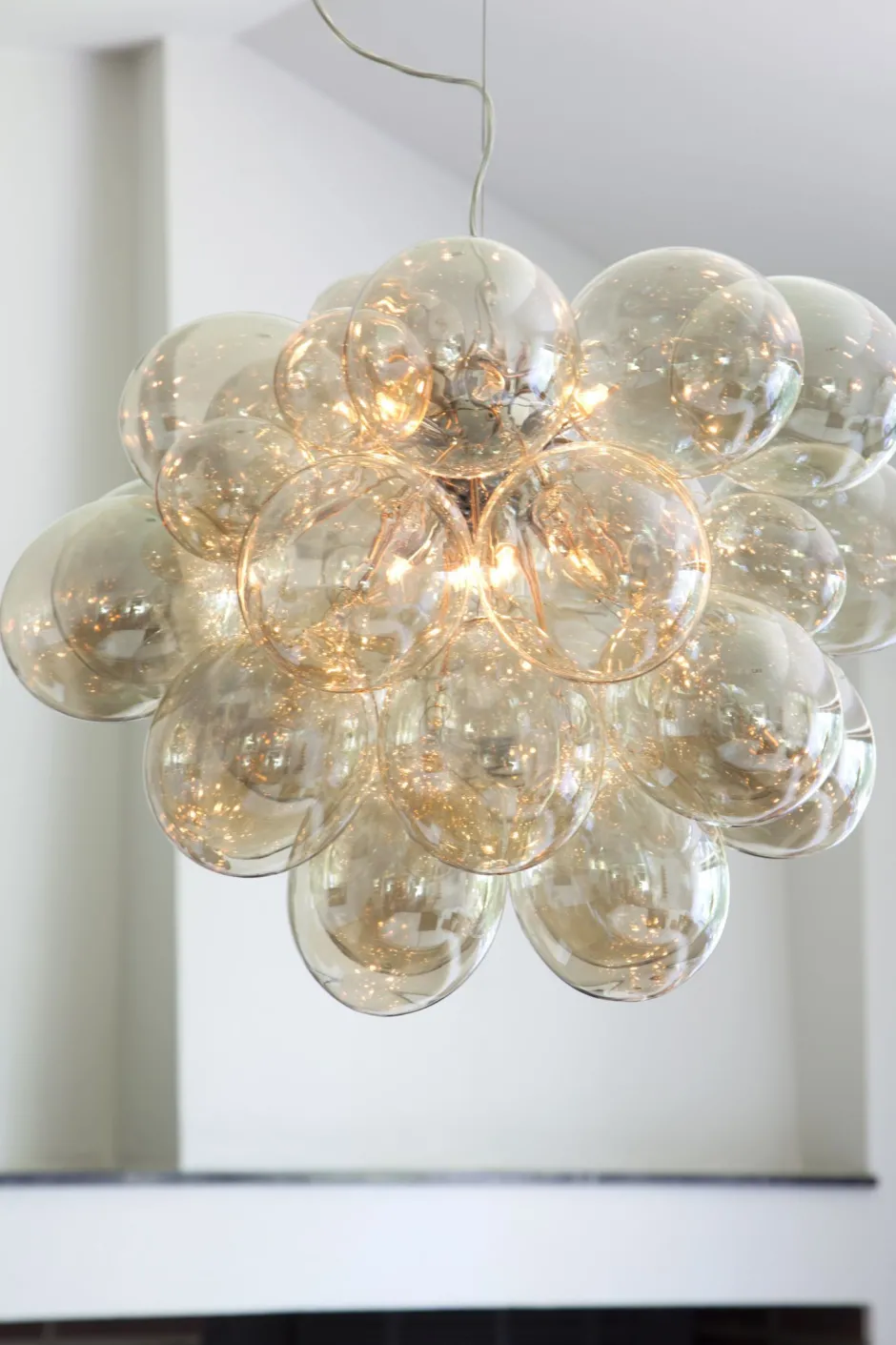 Die traubeförmigen Schirme aus Rauchglas sorgen nicht für eine großzügige Lichtstreuung, sondern setzen auch einen außergewöhnlichen Deko-Akzent – ein absolutes Highlight für Wohnzimmer und Esszimmer