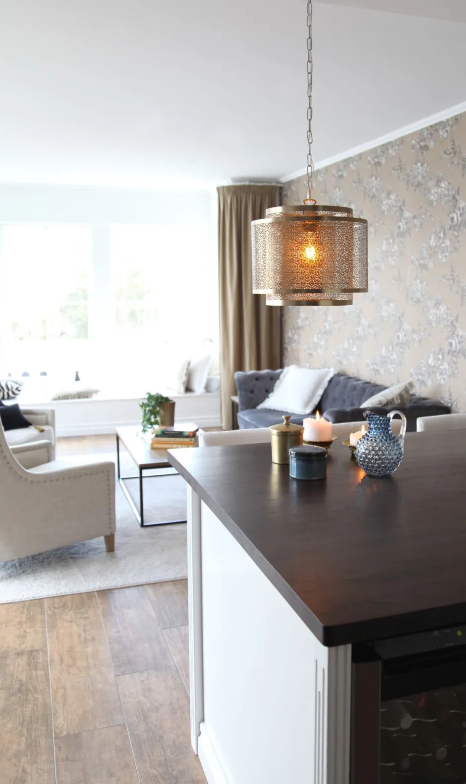 Die Hängelampe ist höhenverstellbar: ideal über dem Esstisch