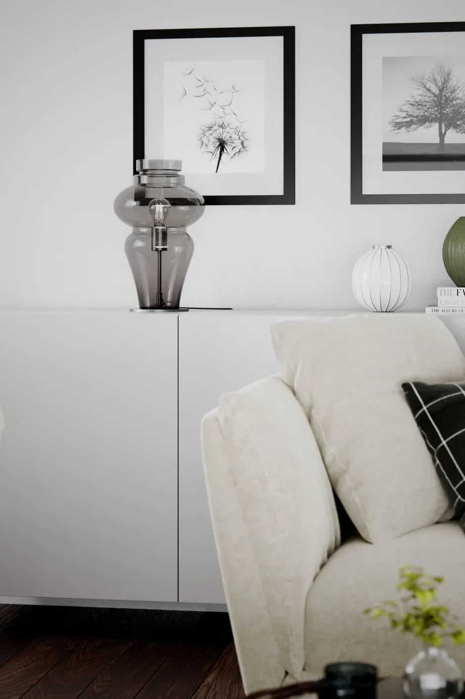 Dekorative Tischleuchte aus Rauchglas