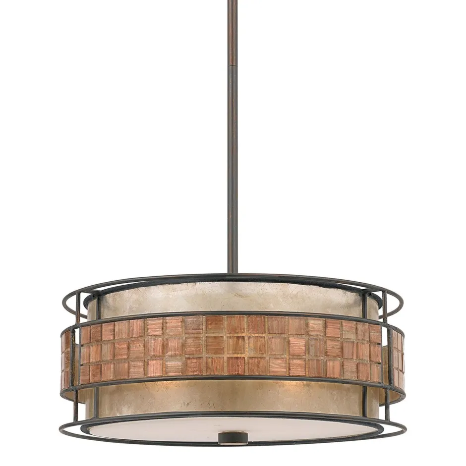 Echtes Mica Glas und ein feines Mosaik aus Fließen machen aus der Deckenlampe ein dekoratives Highlight