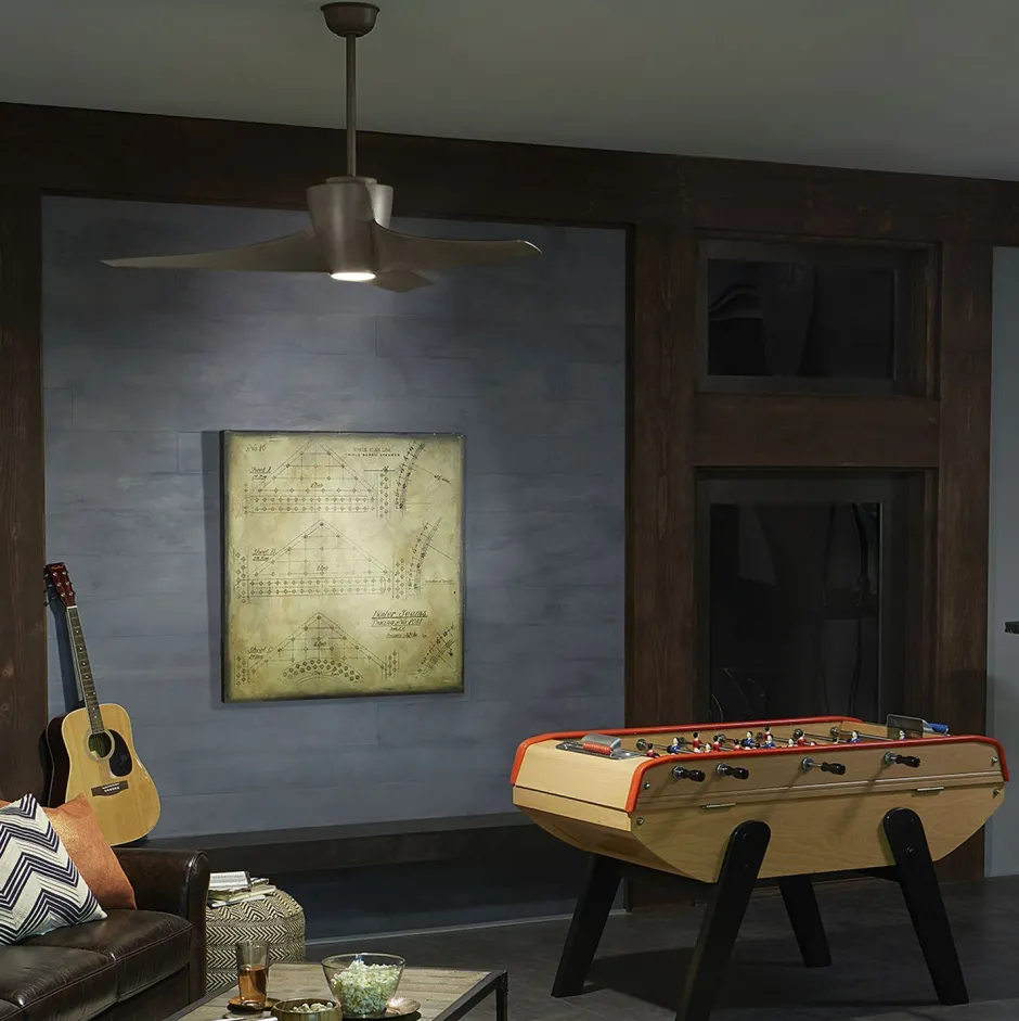 Der Ventilator verschafft Abkühlung an heißen Tagen und erlaubt als Deckenlampe eine großzügige Beleuchtung im Wohnzimmer, Schlafzimmer und Büro
