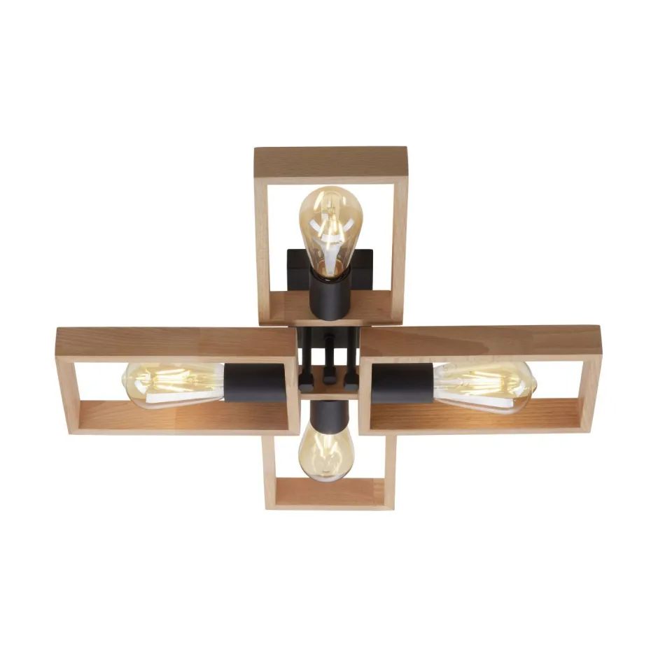 Retro Deckenleuchte aus Metall und Holz