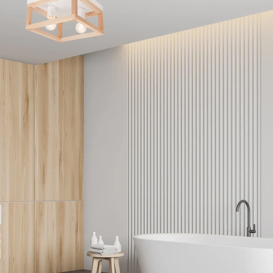Die Kombination der Materialien sorgt für einen wohnlichen Look, wodurch die Deckenleuchte in jedem Raum zu einem echten Blickfang wird