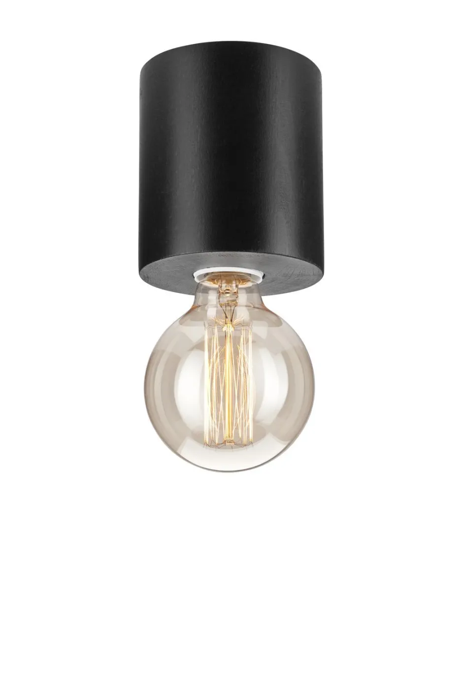 Der kleine Zylinder aus massivem Holz besticht durch seine geringe Größe und die natürliche Maserung, die aus jeder Deckenleuchte ein kleines Unikat macht