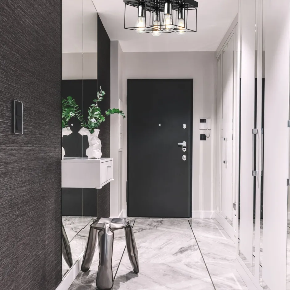 Kleine Deckenlampe aus Metall in Schwarz und Chrom