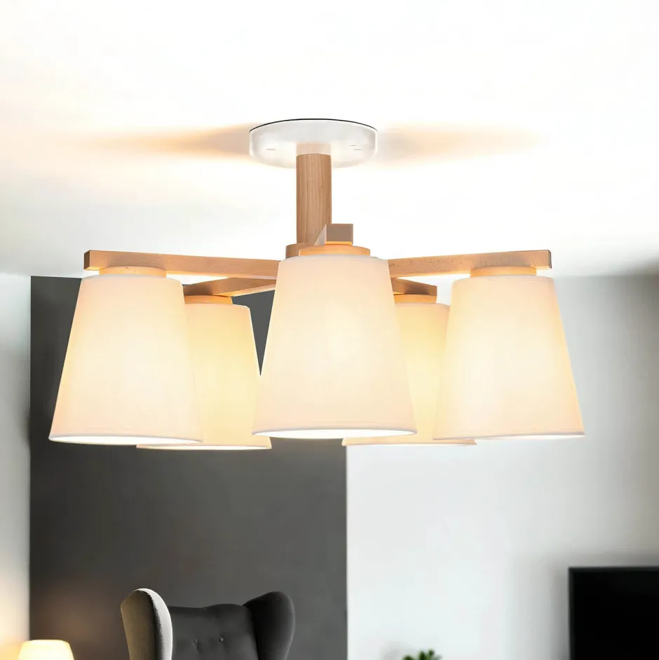 Ansprechender Materialmix von hellem Echtholz und einem leichten Stoffschirm, der perfekt ins Wohnzimmer, Schlafzimmer und Esszimmer passt