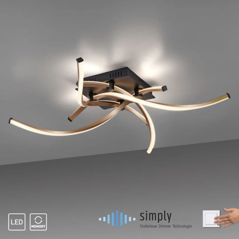 Das geschwungende, längliche Design der Deckenlampe in edlem Gold fügt sich in jedes moderne Wohnambiente ideal ein und wird zum Blickfang in Wohnzimmer, Schlafzimmer und Büro