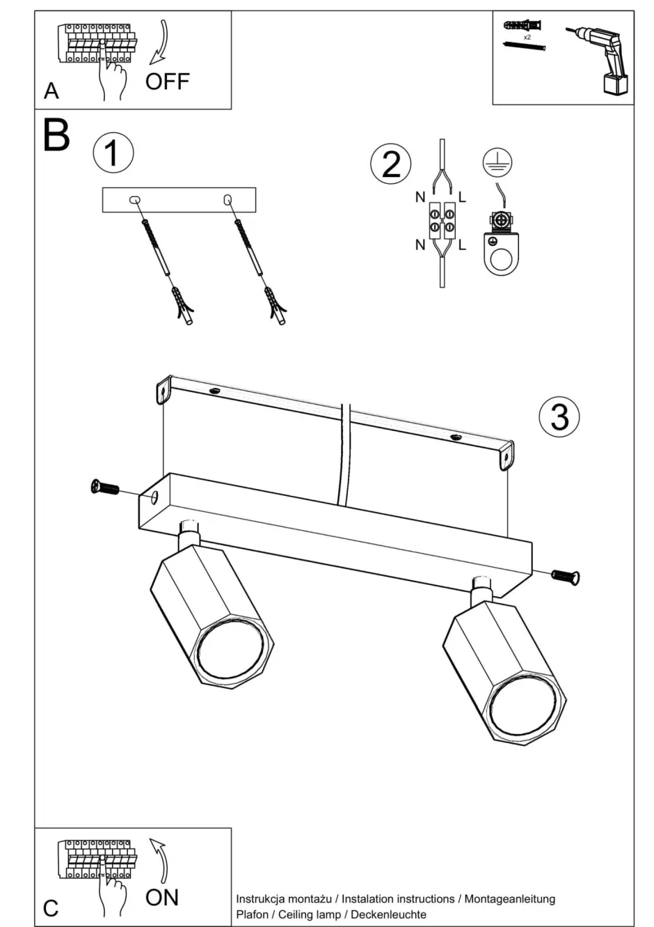 Die Deckenleuchte erlaubt dank der dreh- und schwenkbaren Schirme eine zielgerichtete Beleuchtung und passt ideal in Wohnzimmer, Küche und Flur