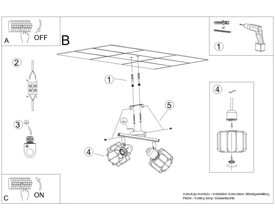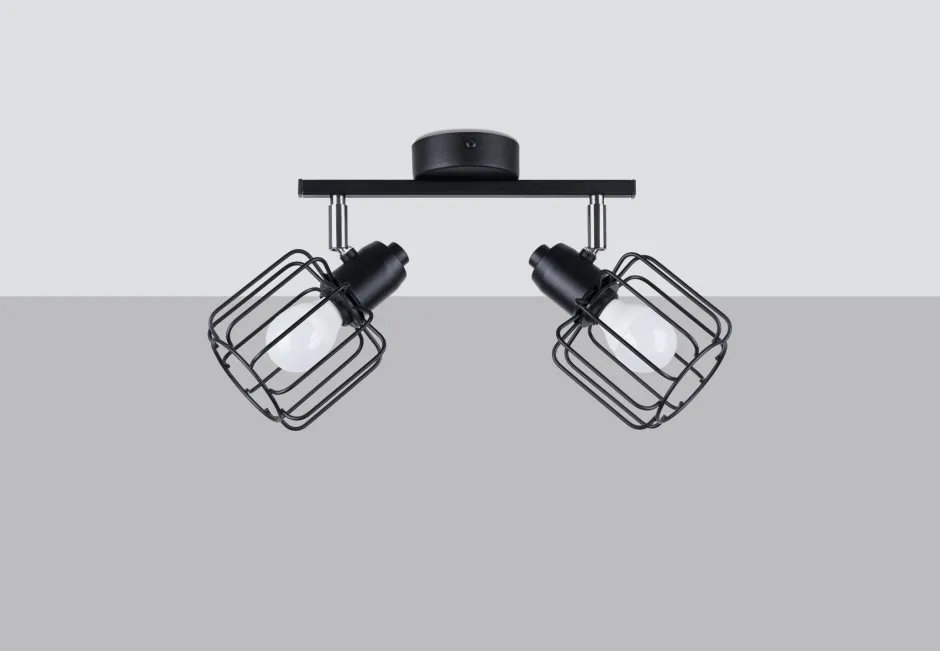 Schwarzer Deckenstrahler mit Draht Schirmen