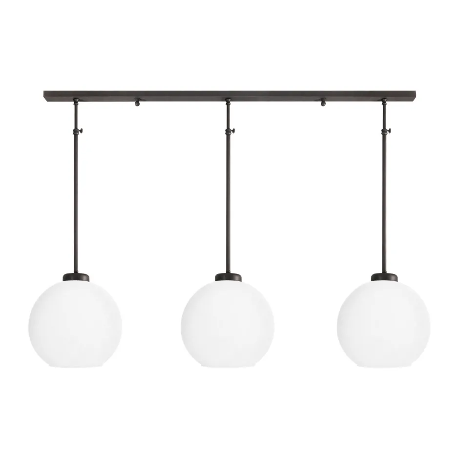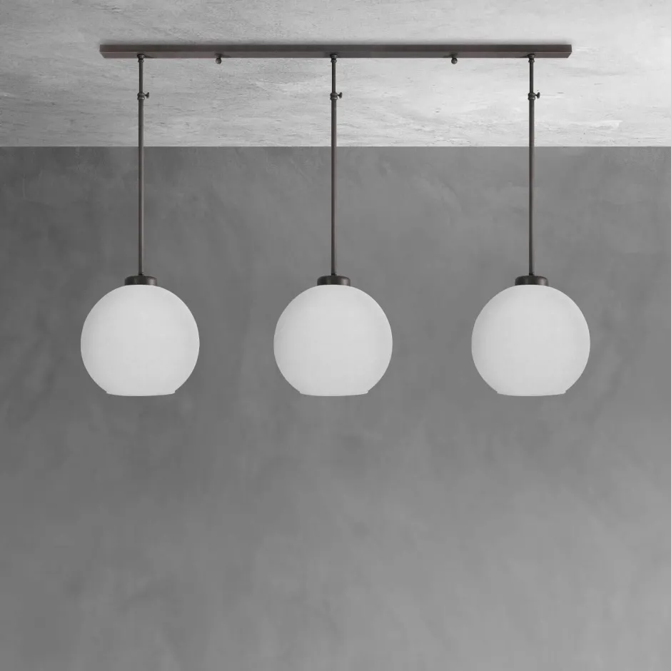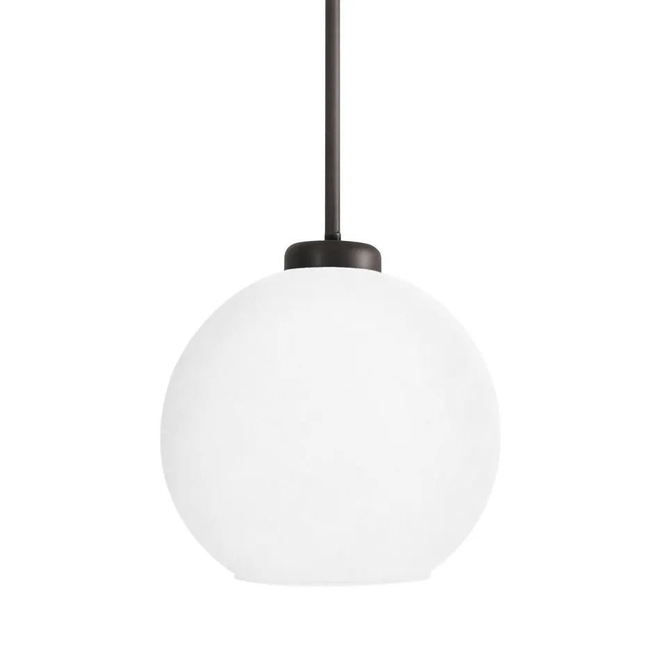 Kleine Pendelleuchte aus massivem Messing mit Kugelschirm aus Glas