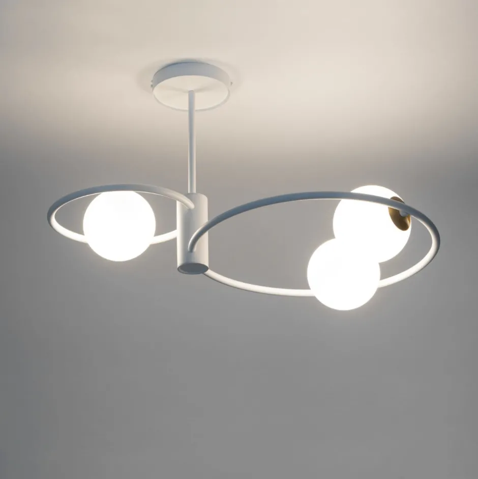 Moderne Design Deckenlampe aus lackiertem Stahl und Glas in Weiß