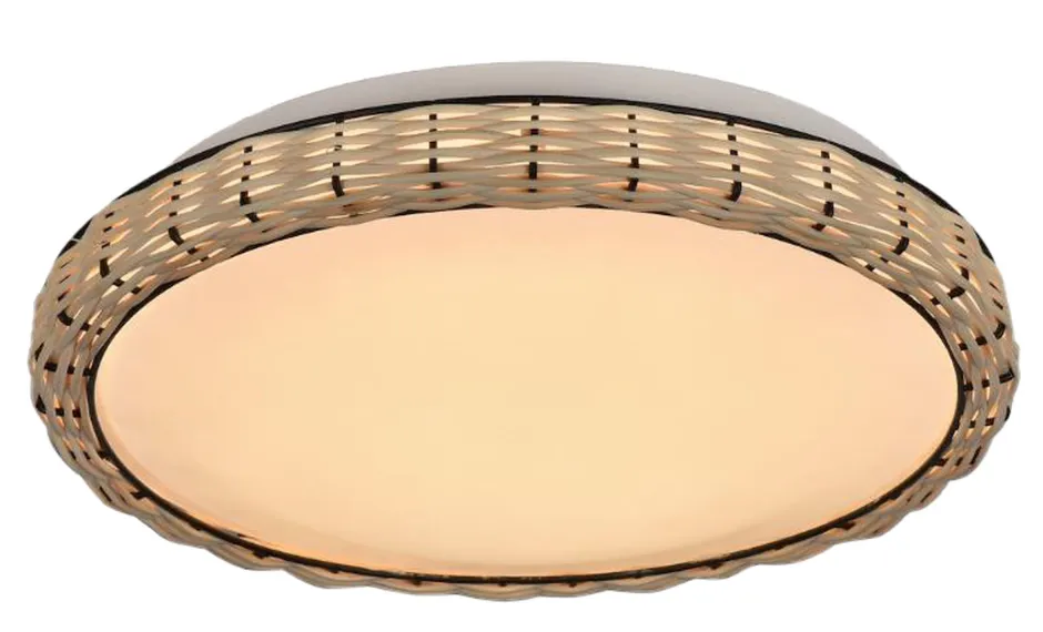 Moderne LED Deckenleuchte aus Metall und Rattan in Natur und Weiß