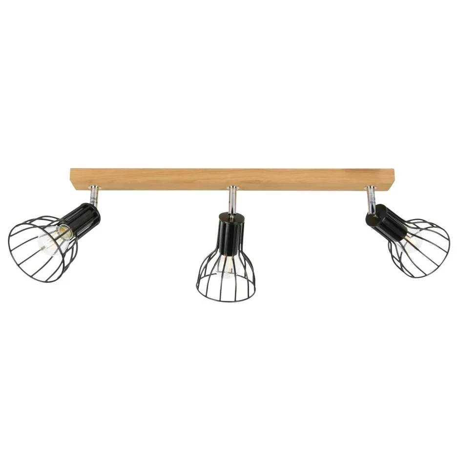 Retro Deckenstrahler aus FSC-zertifiziertem Eichenholz und Metall