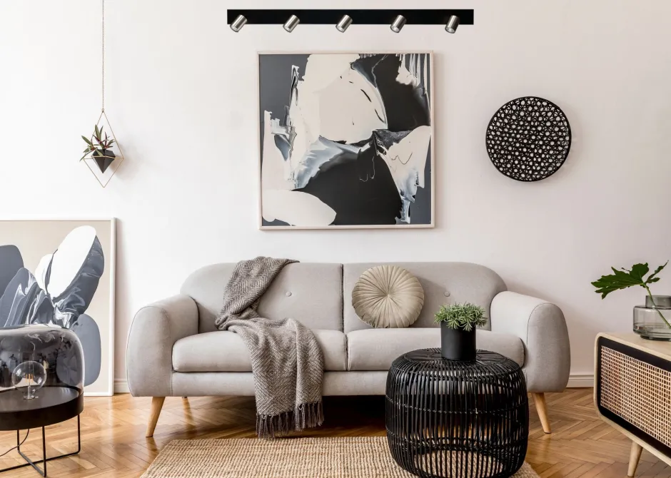 Die verstellbaren Lampenschirme erlauben eine zielgerichtete Beleuchtung und erhellen Wohnzimmer, Küche, Esszimmer und Flur individuell