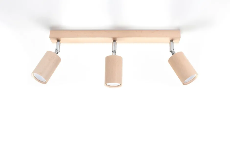 Schlichter Deckenstrahler aus massivem Holz in Chrom und Creme
