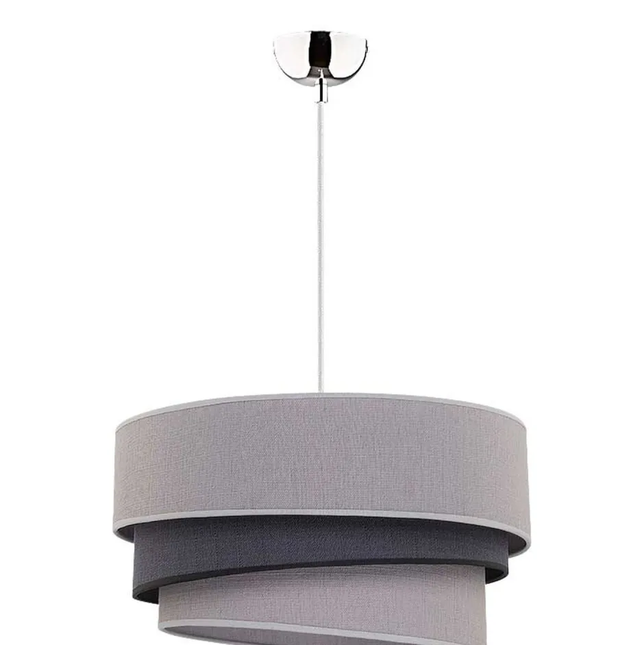 Außergewöhnliche Hängeleuchte mit einem dreiteiligen Lampenschirm in verschiedenen Grautönen