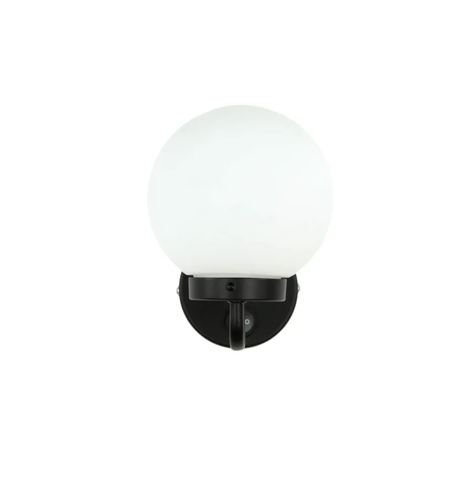 Der Kugel Schirm der Wandleuchte besteht aus satiniertem Glas und erlaubt eine blendarme Beleuchtung: perfekt für den Einsatz neben dem Spiegel im Badezimmer