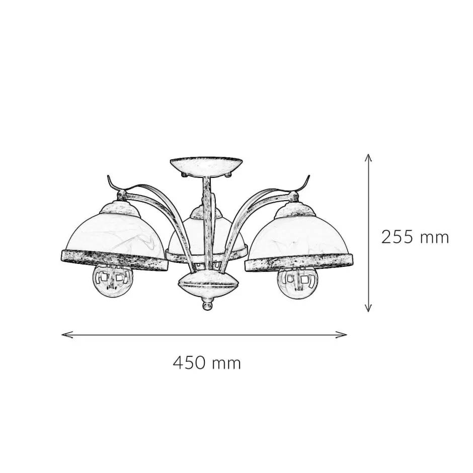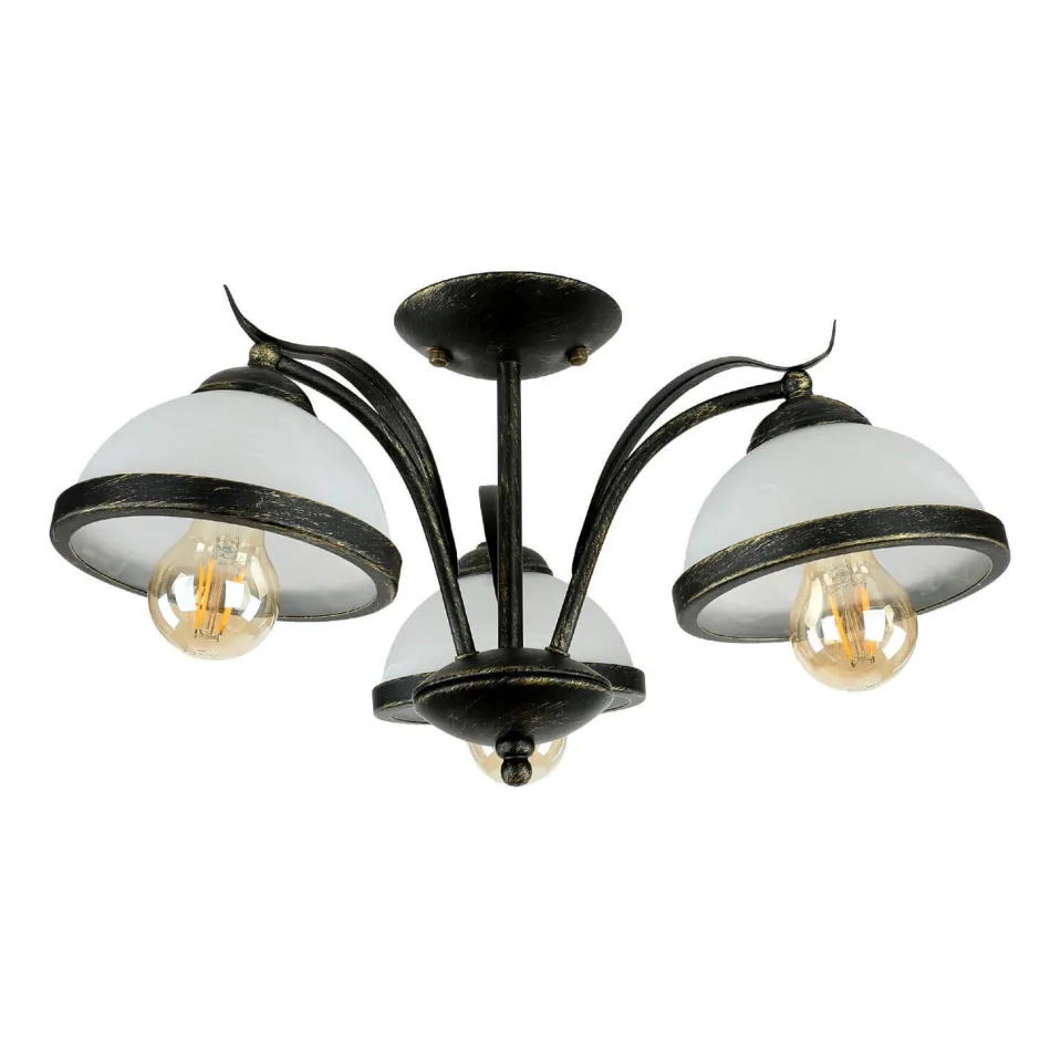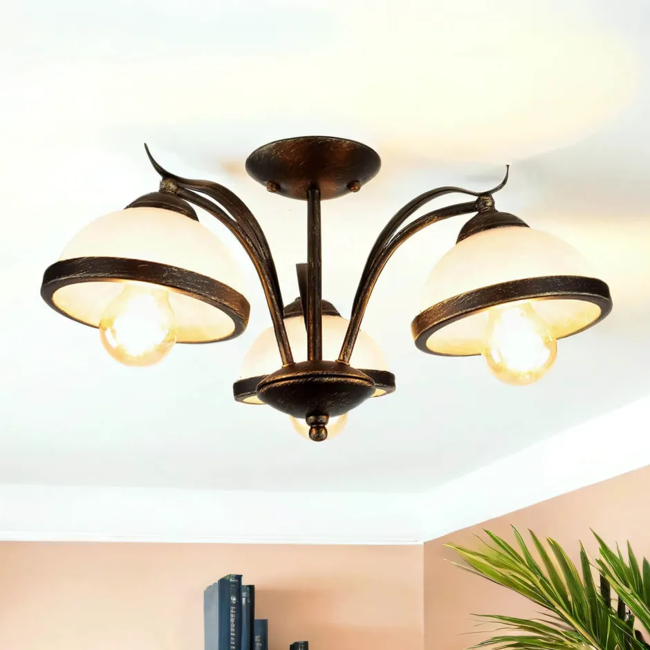 Elegante Deckenlampe aus Glas und Metall in dunklem Shabby Gold antik