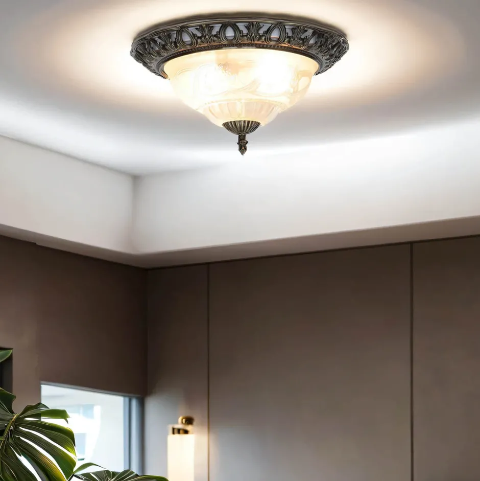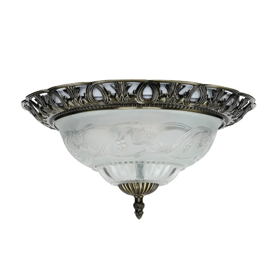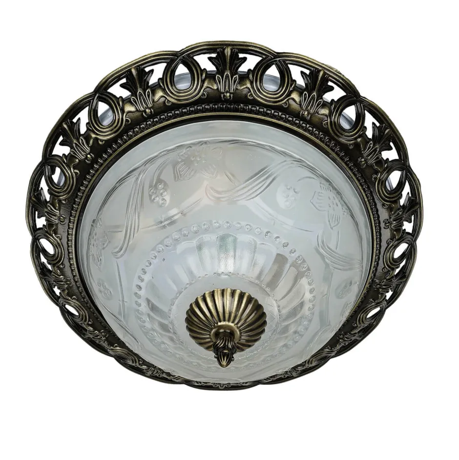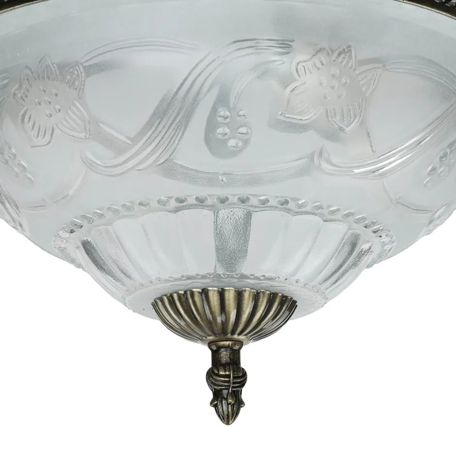 Der kunstvoll gestaltete Glasschirm im floralen Stil verleiht der Leuchte einen antiken Touch