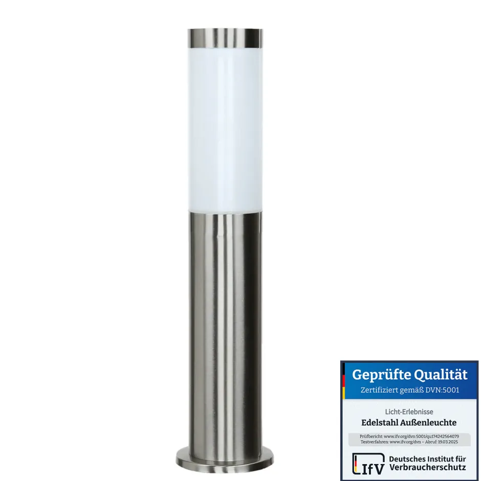 Witterungsbeständige Außenleuchte mit Erdspieß und Steckdosenanschluss aus Edelstahl