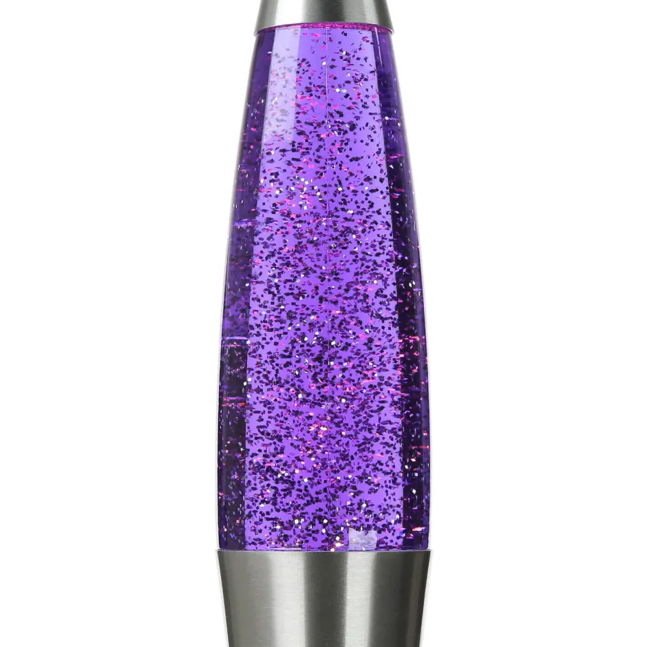 Eine Lavalampe mal anders: jede Menge beweglicher Glitter in lila Flüssigkeit versprüht Freude pur