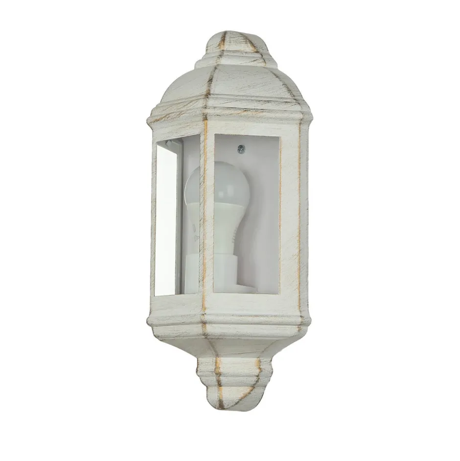 Die Außenlampe in angesagtem Weiß-Gold besteht aus witterungsbeständigem Aluminiumdruckguss und robustem Glas