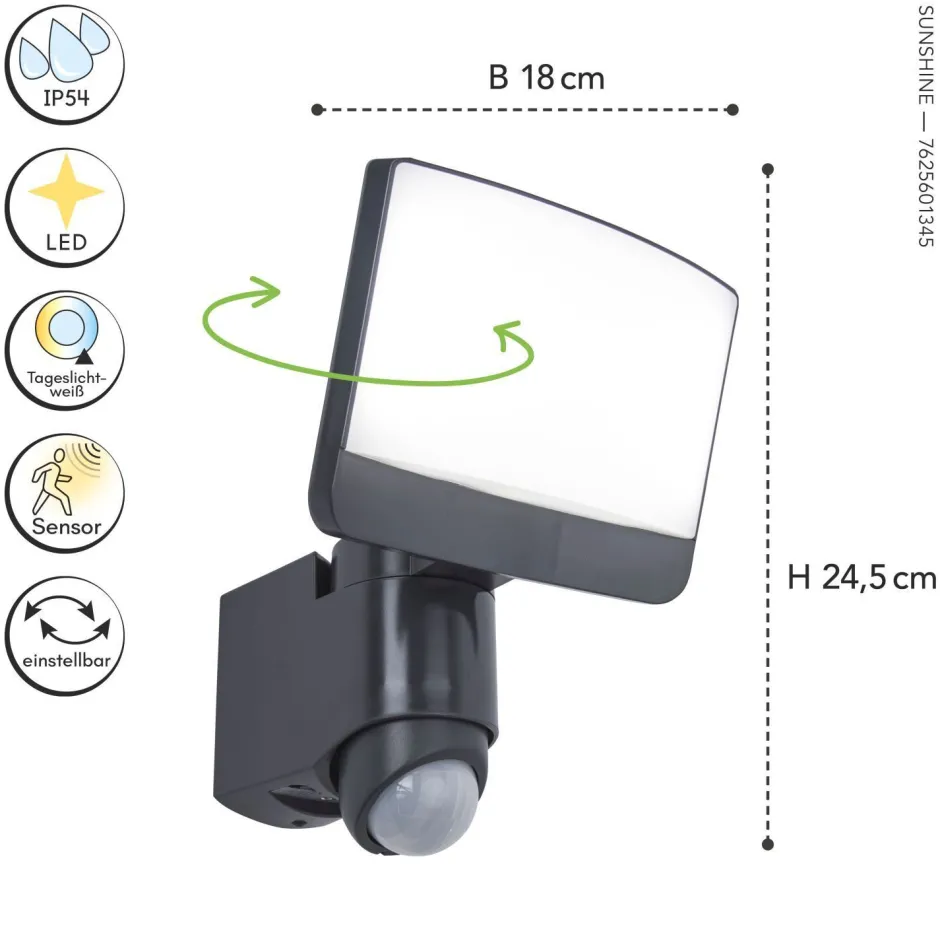 Zeitlose LED Wandlampe mit Bewegungsmelder für außen in Anthrazit