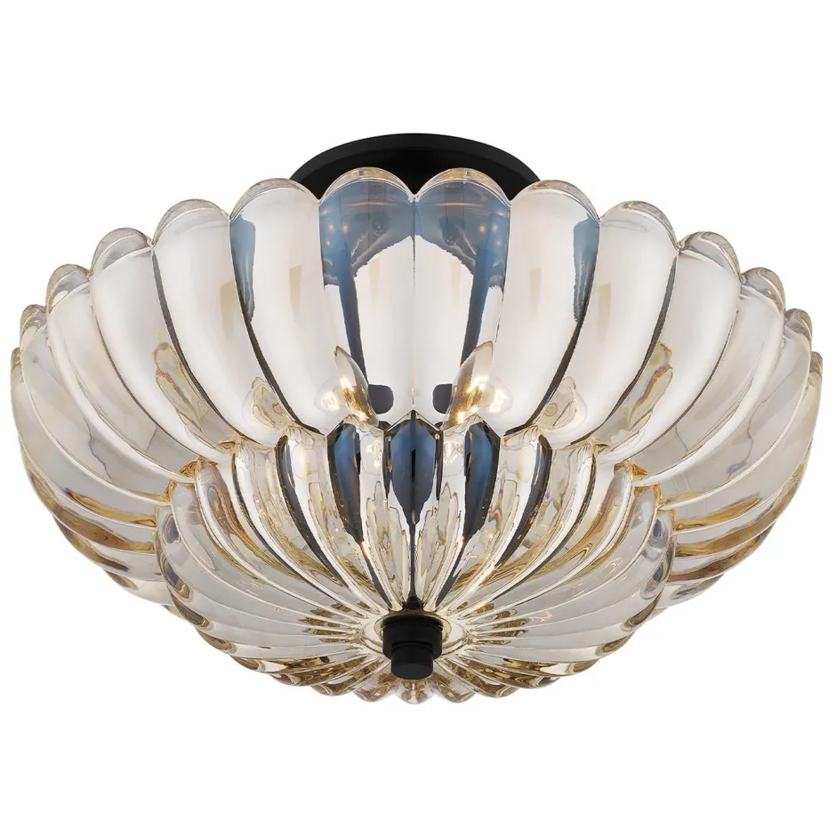Der Lampenschirm aus spiegelndem Rauchglas besticht durch deine gefächerte Optik und eine außergewöhnliche Farbe, die aus der Deckenleuchte einen stilvollen Blickfang machen