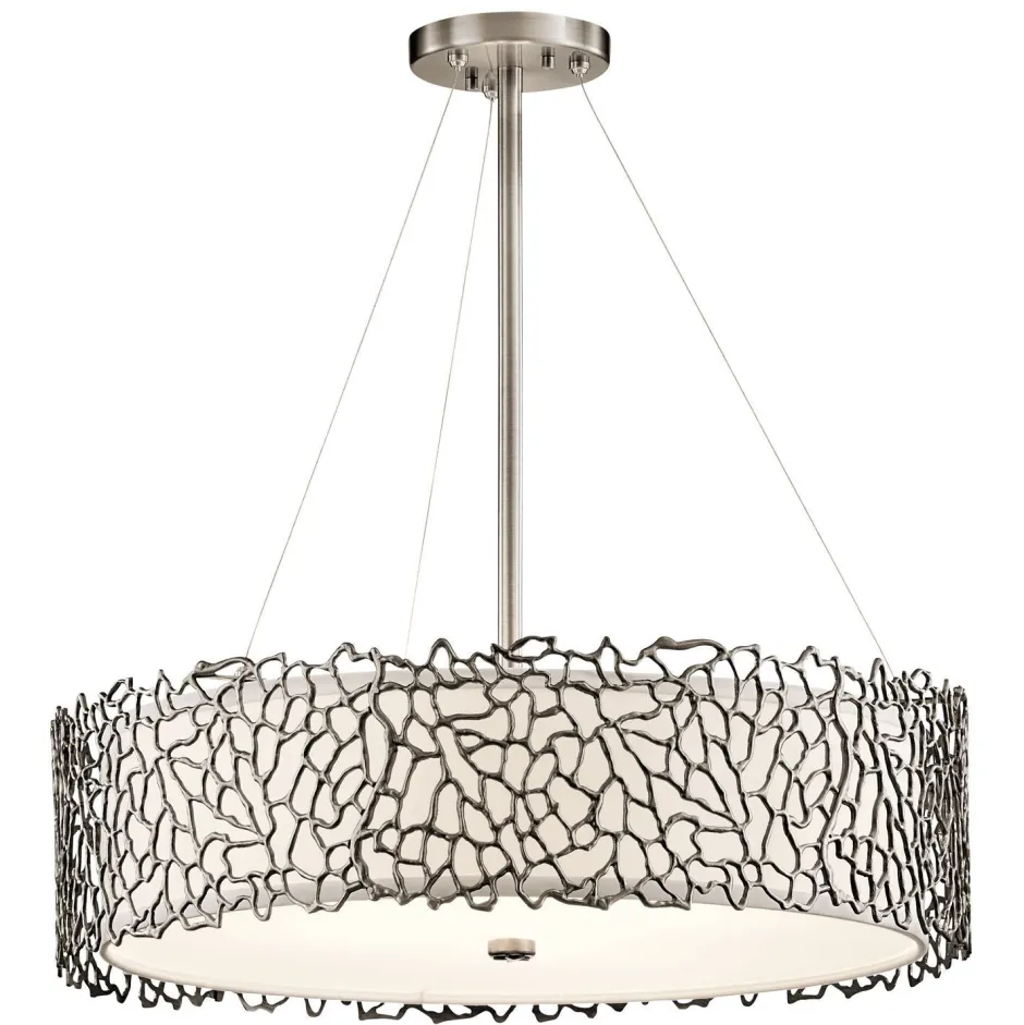 Das Geflecht erinnert an Korallen und macht aus der Deckenleuchte einen dekorativen Blickfang