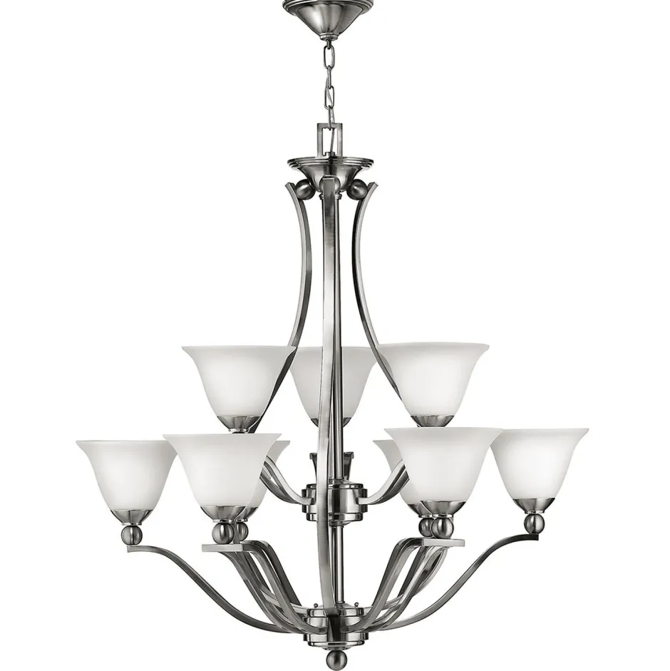 Moderner Kronleuchter in Nickel gebürstet und Weiß für Wohnzimmer, Esszimmer und Galerie